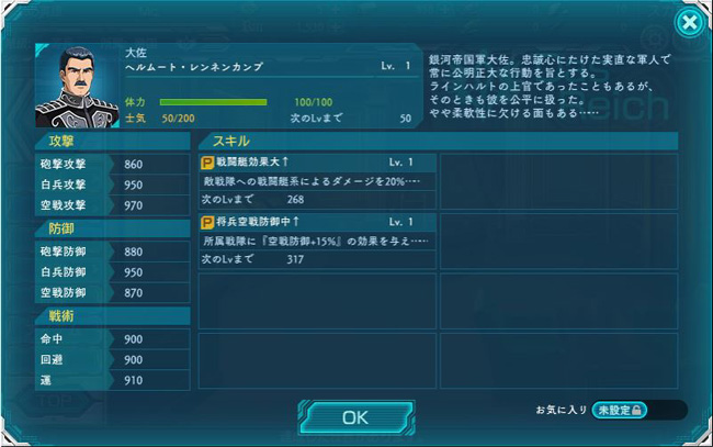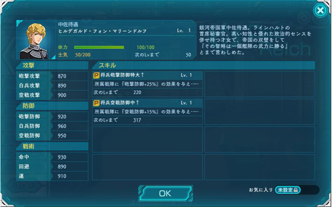 能力もヤンにこそ及ばないものの、同格のメックリンガーよりも高い数値となっており、育てればかなり頼りになる存在になりそうです。