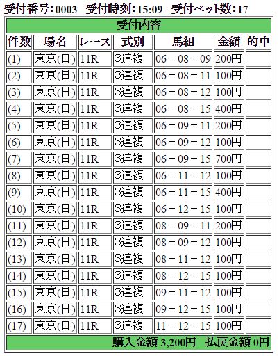 馬券はアンズチャン中心に、他の人気馬も押さえた三連複で。相手妙味はもうルメール騎手だけで買いのタールタン(6番人気)と、anka2師匠の本命馬シゲルカガ(11番人気)辺りでしょうか。