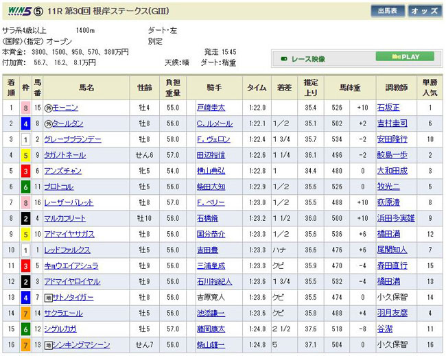 しかしこうやって観ると、8歳馬が5頭、9歳馬が2頭、10歳馬が1頭とか年寄りばかりのメンバーだったのに、モーニン以外の若い人気馬(プロトコルやサクラエール、アンズチャン)はもうちょっと頑張らないとですねぇ。