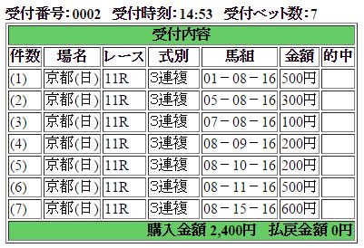 ローレルベローチェの複勝が430円も付いたのなら、素直にそこに全額で良かったのか・・・。ここしばらく自分の予想が全然当たらないので、こういう時は絶好調の師匠(土曜日も12万馬券的中!)の予想に乗るしかないです。