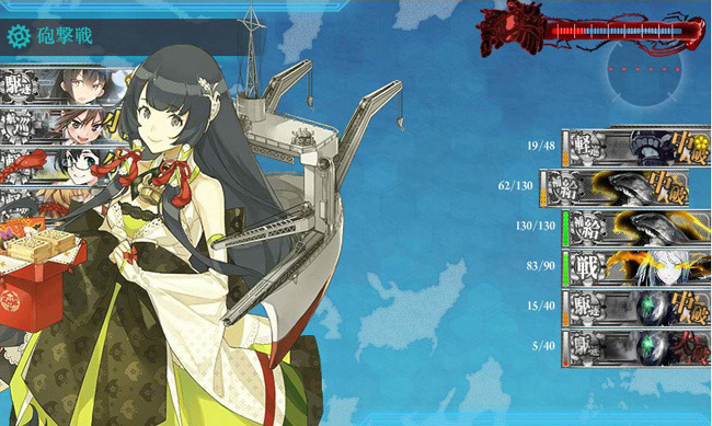 その後はいつもの金剛型4隻+正規空母2隻。今月も最近出番が少ない赤城と大鳳を使っています。赤城の節分ボイスがかなり酷いので、まだ聴いてない方はお試しあれw