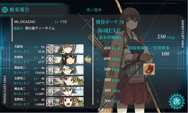 2-5はいつも通り第5戦隊任務から。毎月妙高型4隻+航巡2隻でクリアしていますが、今月の航巡枠は鈴谷と熊野。平坦娘が多い最上級航巡ですが鈴谷だけは例外。高雄級に匹敵する胸部装甲ですな。
