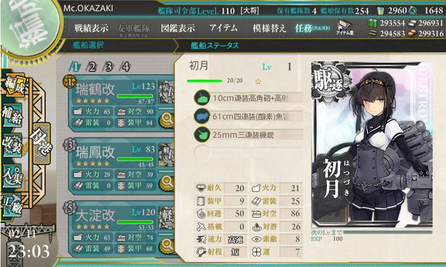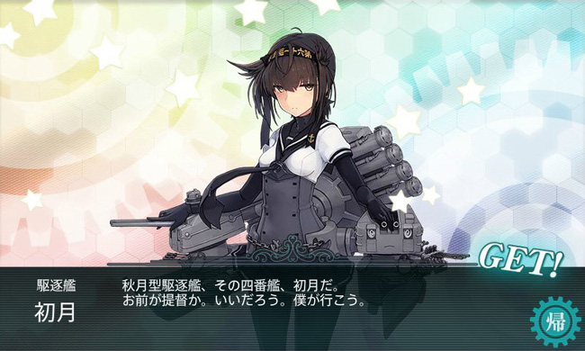 E-2の海域突破報酬。まずは駆逐艦初月!3隻目の秋月型実装です。つーかまさかのボクっ娘w