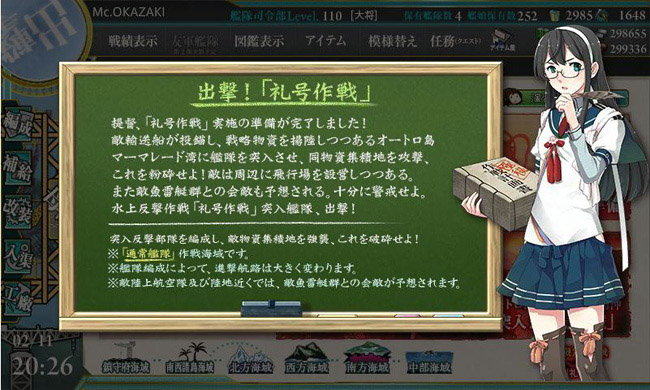 他、甲作戦の突破報酬は勲章、改修資材×8(嬉しい!)、洋上補給×2(いらん!)、熟練搭乗員。礼号作戦組が育っているとかなり楽にクリア出来る海域だと感じました。攻略中は出なかった新艦娘の沖波はここで掘るのが良さそうです(甲作戦の出現率が4%と結構高いし)。