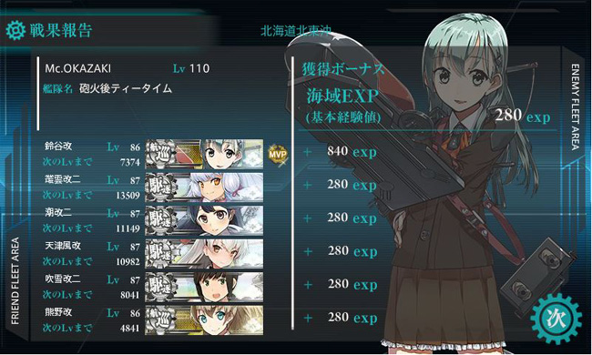 7回目の出撃で輸送ゲージの破壊に成功。駆逐艦は損傷した数隻の入れ替えがあったものの、鈴谷と熊野は最初から最後まで参戦しました。やはり名コンビですね、この2隻。