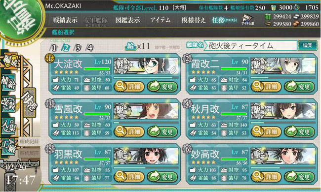 第2艦隊も駆逐艦以外は固定メンバー。ここでも頼りになる大淀さんです。
