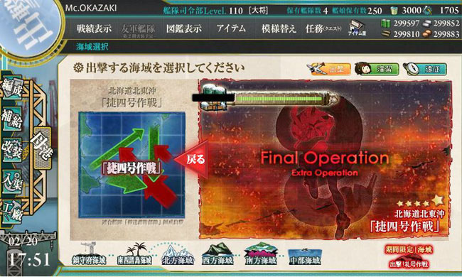 さて、礼号作戦を無事に終えて本土に帰還した艦娘たちに新たなる危機が!またカレー洋沖に・・・ではなく、今度の敵は北からやって来ました。アリューシャン方面から北海道北東沖に現れた深海棲艦の艦隊、これを迎撃・撃滅する「捷四号作戦」が発動されます。