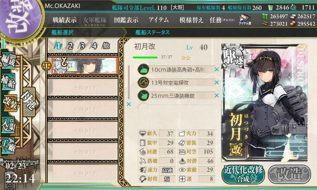 そして初月も改装レベルに達しました。こちらは必要Lv.40と高め。まぁ秋月型はそれだけの強さがありますからね。