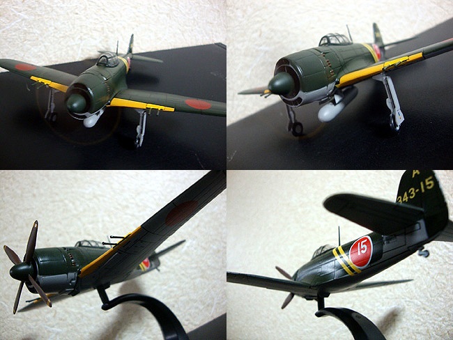 ディティールは悪く無いです。塗りもまぁ合格点。しかし問題だったのは後付けの付属パーツ・・・。ダイキャストの本体に細いプラ製の部品を取り付けるために、本当に簡っ単にボキボキ折れます。今回折ったのは増槽タンクの付け根と翼端のピトー管。取り付ける→押し込む→折れるってのは、さすがにどうよ、と。せめてこの辺のパーツも金属製にしてくれればなぁ(写真では瞬間接着剤で固定してます)。