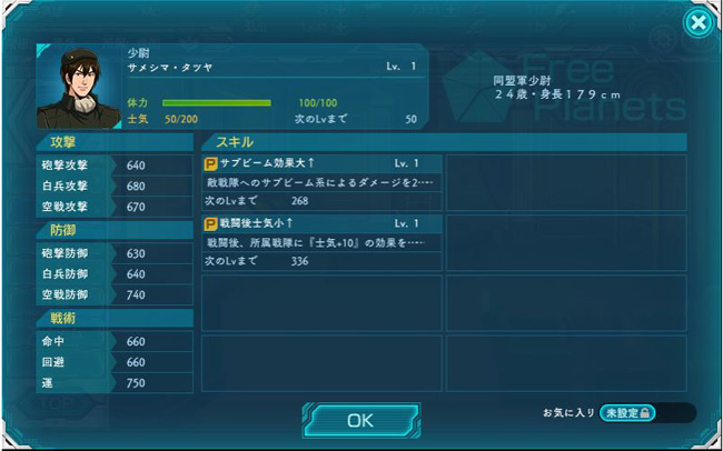 ハゲジジィの大佐。お、この人は砲撃防御特大を持っているのか。悪くはないかな。適当な艦隊の副官に付けておこう。
