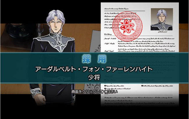 そして・・・おぉっ!やっと出て来ました帝国軍の名将!水色の瞳の提督、アーダルベルト・フォン・ファーレンハイト提督!CVは速水奨さんですよ!自分も特に好きな提督の1人です。