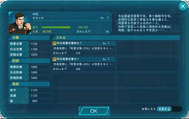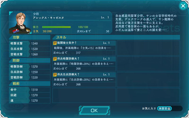 能力値も中将とは思えない低空飛行。佐官でももっとマシなのがたくさんいますよw