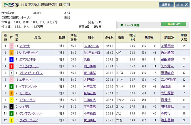 ルメール、痛恨の出遅れ→4コーナーでインを突こうとする→前が塞がり、馬が急ブレーキで万事休す・・・。それでも最後は最速の上がりで再び伸びて来て5着に入った辺り、アルビアーノの底力の証明と言えるかもしれません。