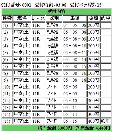 それでもサトノノブレス=ファントムライトのワイドのおかげでほんのちょいプラス収支。1番人気→9番人気→13番人気決着だと、こんな獲り方しかないよな。ここは致し方無しとしましょう。