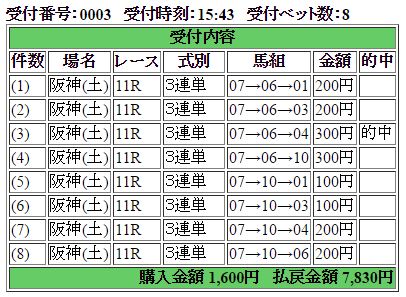 馬券は◎ミッキーロケットと、中山実績を買ってロードクエストを◯として◎◯からの三連複流し。人気どころからの買い目なので点数は絞ります。