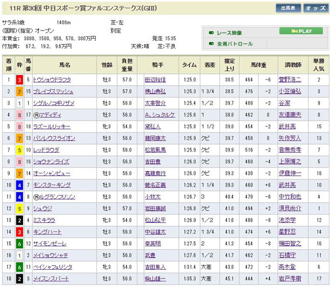 武豊のドレッドノータスは後方から競馬を進めるも、重賞初騎乗の藤田菜七子騎手と競り合う見せ場(?)だけで7着。ルメールの出遅れは、藤田騎手のお尻を観ながらレースを進めるため?との疑惑が微レ存w