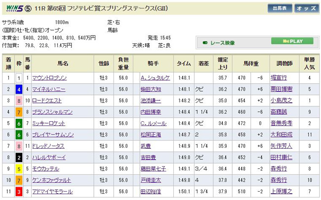 スプリングステークス(中山芝1800m、3歳限定GU)