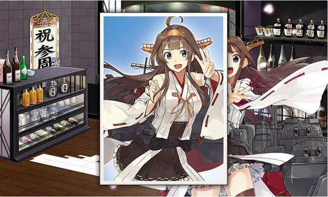 今回の掛け軸を書いた金剛のブロマイドです!クリックすると大きく表示されます。ちなみにこの絵は、艦これ三周年記念特集が組まれた先週のファミ通の表紙絵でもありますね。私も購入しました!
