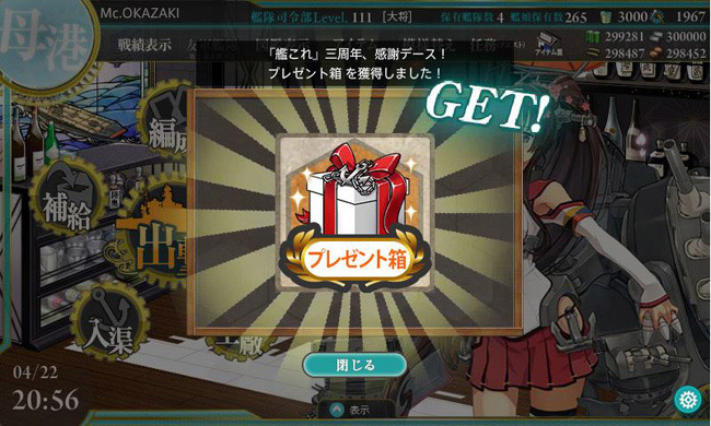 ログインボーナスでプレゼント箱が全提督に配られています。