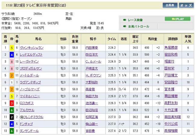 ダービーと同じ距離・コースで行われる最重要ステップレースなのに、長い歴史の中で未だにダービー馬を輩出していない事でも知られるこのレース。やはり短い期間に府中芝2400mを2回走って両方で結果を出すのは難しいんですかね?