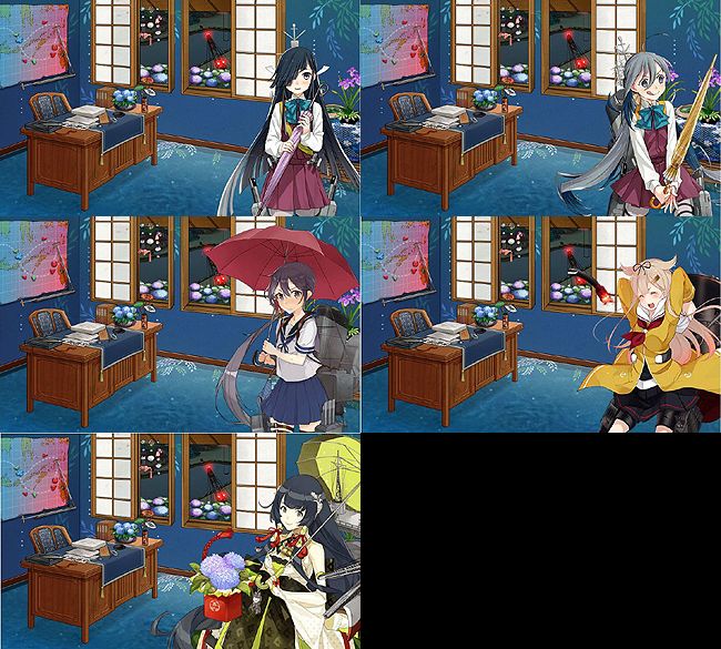 春イベ明けのメンテで実装された梅雨限定グラ、今年はこの5隻です。