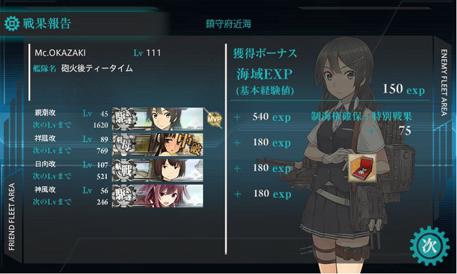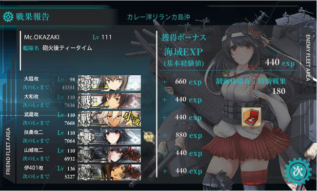 しかしここのMVPはいつも利根がかっさらいますなぁ。海域経験値も高いし、来月からは筑摩にも出番を作ってあげようかな。