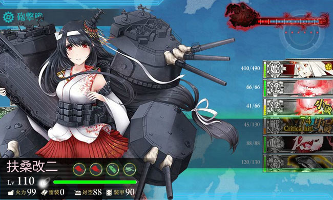 しかしラスダンは育成艦を投入するような余裕は無いので、いつもの装甲空母(今月は大鳳)・大和・武蔵・扶桑・山城・伊401に変更。春イベを経て嫁艦となった扶桑姉妹が本領発揮です。