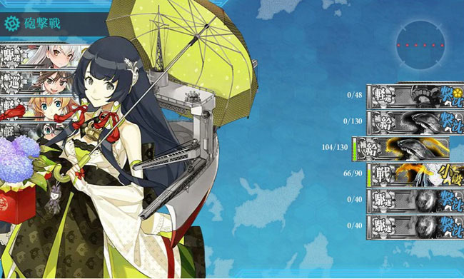 2-5。高速戦艦の需要があるここでは、やはり新規入手艦のアイオワを初の実戦投入。ある程度のレベルがあれば、基本能力が極めて高いアイオワは十分主力となります。