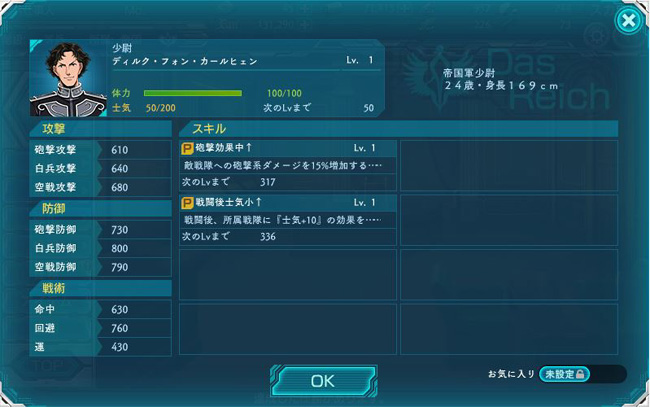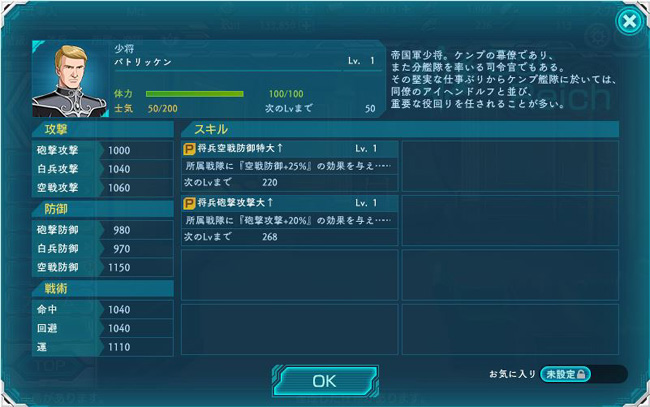 能力もそこそこですが・・・使いどころが難しいなぁ。一応第1艦隊所属のシュタインメッツ提督の副官にして、ラインハルトの直属艦隊に配置はしています。