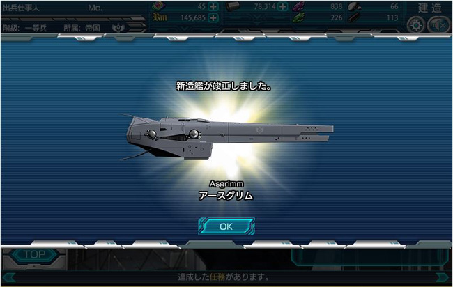 まずは新造艦の建造。今回は帝国軍ファーレンハイト艦隊の旗艦・アースグリムが登場!やったね!欲しかった戦艦の1つです。