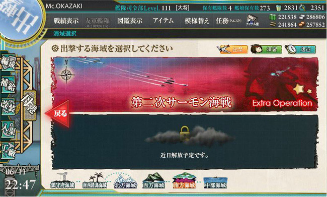 うーん、この海域は毎月クリアする必要はないかなぁ。勲章1つのために消費する資源がちょっと多過ぎだよなぁ。