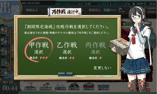 なので、ここはひたすら丙作戦の出撃とゲージのリセットを繰り返し・・・道中に潜水艦と輸送船がわんさと出るので、ウィークリー任務が捗りますw