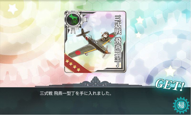 E-2甲作戦の突破報酬は特注家具職人、勲章、補強増設x2、そして三式戦 飛燕一型丁。飛燕一型丁は陸上戦闘機としては飛燕244戦隊に次ぐ優秀機体かな。