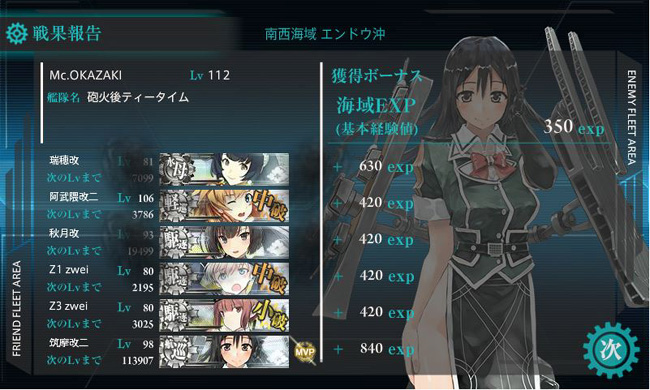編成も一度も替える事なく、当初からの投入艦でクリア。しかも周回数が少ないため、どの艦娘もレベルアップせず。ここ、本当にイベント海域だったのか?
