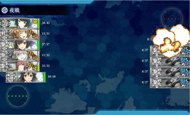 揚陸作戦を成功させる事7回目・・・ケツダイソンを撃沈するS勝利で見事海域突破です。あるぇー?ちょっと簡単過ぎたぞ?これ、本当に甲作戦だよな?と疑ったくらい。