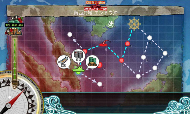 帰省のためにイベント開始が遅れた上に、E-1で伊26掘りにかなりの時間を費やしてしまったので、掘りが無いこの海域にはあまり時間を掛けたくありません。サクッと参りましょう!