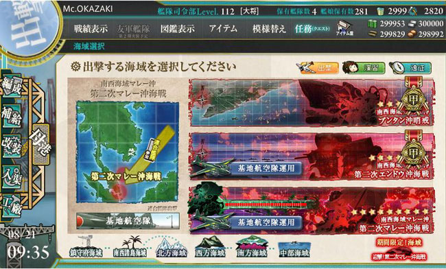 さぁ、これでようやく作戦を「甲」に変えての本攻略を始められます。この時点でイベント終了まで残りあと6日。未だ最終海域のE-4は手付かずなのですからさすがに焦ります。