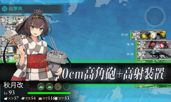 1-6は秋月型の晴れ舞台!特に秋月は浴衣modeが実装されているので目を楽しませてくれます(中破させられなかったのが残念>コラ)。いずれ秋月型6隻で艦隊を組める日が来るのかな・・・
