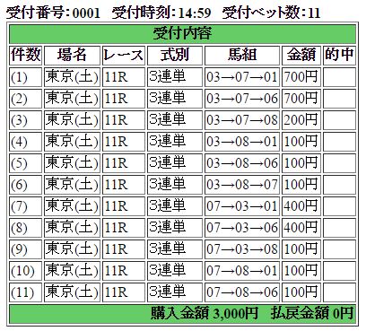 馬券は・・・まぁ三連複ではオッズ的に買えないレースだったし、やむを得ませんかね。