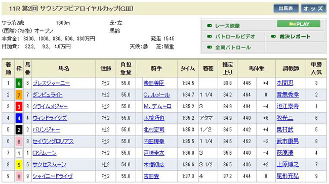 サウジアラビアロイヤルカップ(府中芝1600m、2歳限定GV)