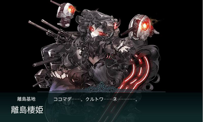 ボスは離島棲姫・・・いわゆる陸上型です。しかも複数の厄介な沿岸砲台に守られており、対陸上型装備は攻略に必須。となると・・・出番ですよ、ロケラン大淀さん!