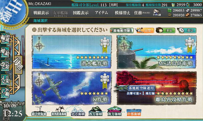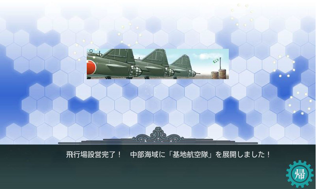 6-3突破で1つ、そしてアイテム屋さんで2つ、計3つの設営隊を入手です。これで念願の通常海域への基地航空隊が展開可能に!