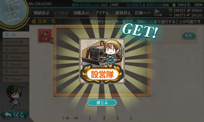 トリガーが発動し、いよいよ基地航空隊の設営隊を入手する任務に着手します。入手方法は6-3を攻略する物が1つ、そして5-3を攻略する物が1つ・・・無理に攻略しなくても設営隊はアイテム屋さんでも購入出来ますが、まぁそこは任務でこなしたいじゃないですか。