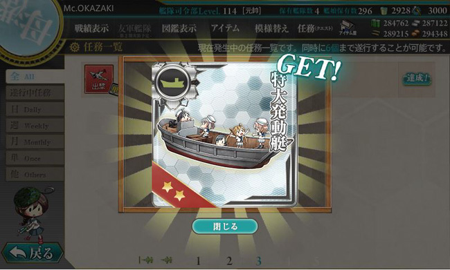 これをクリアすると、新装備の特大発動艇が貰えます。いわゆる大発の大型版。当然輸送能力も2倍、2倍!・・・え?違うの?