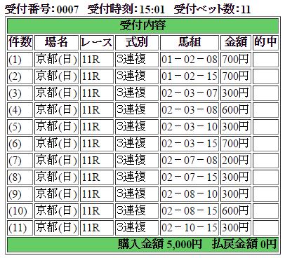 デイリー杯2歳ステークスは残念な結果に終わったものの、その後の府中と京都の最終が狙い通りの展開で共に三連単が的中!特に京都は万馬券になりました。武蔵野ステークスと併せてこの3本の的中でこの日は久しぶりの大勝!よしよし、この勢いのまま明日のエリ女も大魚を釣り上げますよ!