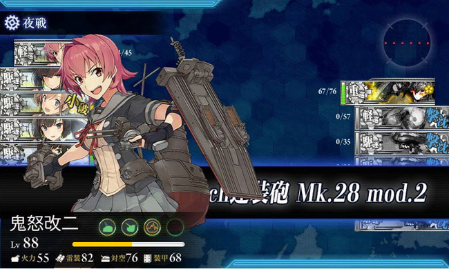 さて4-5の前哨戦です。ここは戦艦1・正規空母2・重巡2・雷巡1の編成ですが、重巡はどうも秋イベでルート固定艦になりそうな愛宕と高雄を少し鍛えておきます。