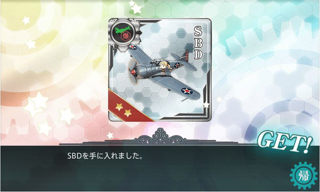 E-2甲作戦突破報酬は、SBD、TBD、大発動艇、戦闘糧食x2、給糧艦伊良湖x3。大発と伊良湖は嬉しいですね