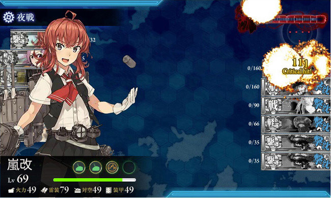 山風ドロップという幸運に恵まれた次の出撃が見事にラストダンスとなりました。これまで散々艦隊の足を引っ張って来た嵐が最後の最後に大仕事!夜戦で見事な連撃を入れて旗艦のヲ級を撃破です。ウチの娘たちは、みんなやれば出来る娘!