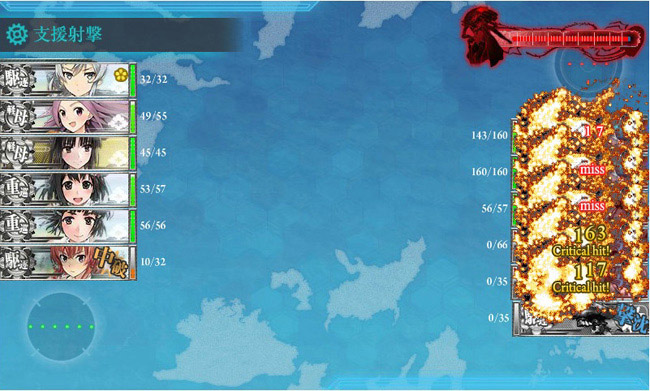 更に戦艦2・正規空母2・駆逐艦2からなる決戦支援艦隊を投入する事により、ヲ級2隻(ホーネットとエンタープライズですな)に軽空母2隻で挑む攻略艦隊をサポート。これにより、ボスマスにさえ到達出来ればほぼ確実に敵艦隊を撃滅させる事が出来ます。