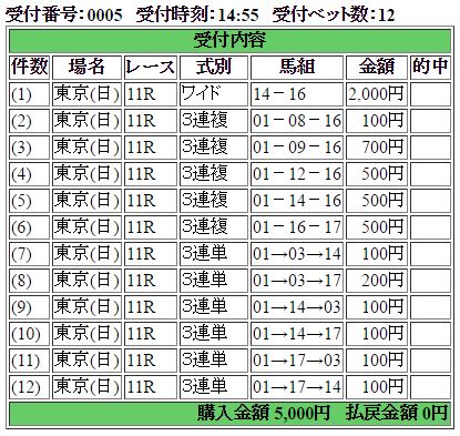 馬券は、キタサンブラック頭の三連単も購入していたものの、さすがにこの組み合わせまでは手が回らずハズレ。ちなみにスクショ撮り忘れましたけど、この日の京都最終に組まれていた京阪杯(京都芝1200m、GV)もハズレで、今週の重賞は全滅でした(土曜の京都最終で三連単を獲っているので、かろうじてボウズではなかったですが)。